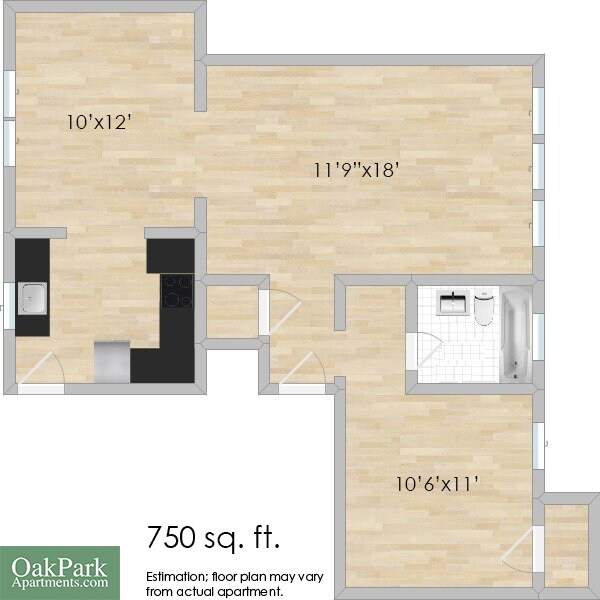 1 Dormitorio, 1 Baño, 750 pies²Galería del Modelo