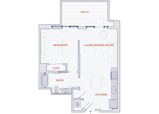 1 Bedroom | 660 sf | Large Patio - Plano Unidad de apartamento: 110Modelo de apartamento: 1 Bedroom | 660 sf | Large Patio1 Dormitorio, 1 Baño, 660 sq ftDisponible April 17, 20261 Bedroom | 594 sf