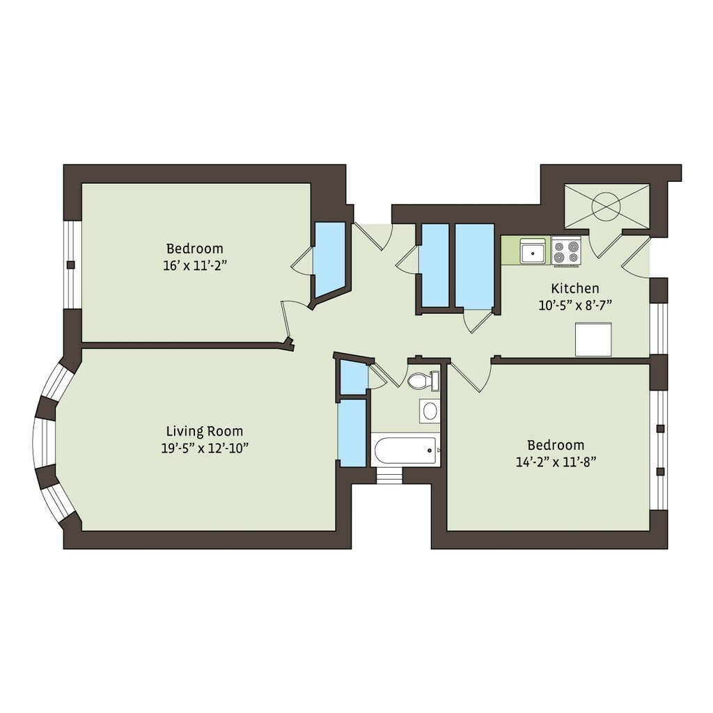 2 Dormitorios, 1 Baño, 878 pies²Galería del Modelo