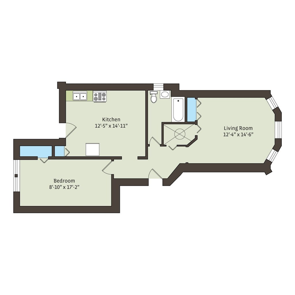 1 Dormitorio, 1 Baño, 740 pies²Galería del Modelo