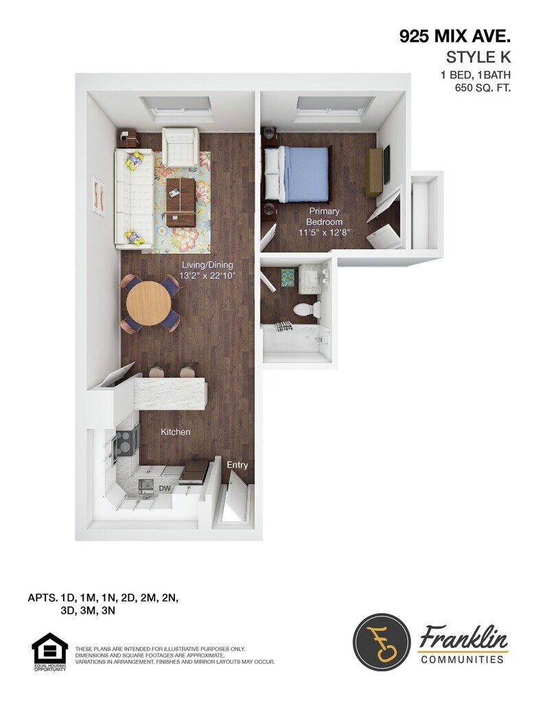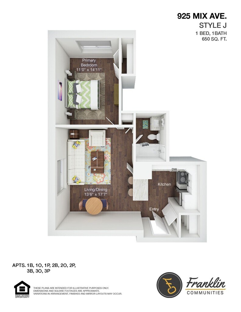 Modelo de apartamento: 925 1BR 650 kitch entry$1,8951 Dormitorio, 1 Baño, 650 sq ftDisponible Ahora![]()