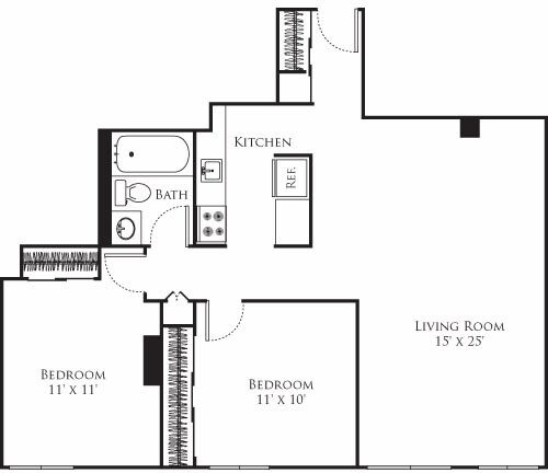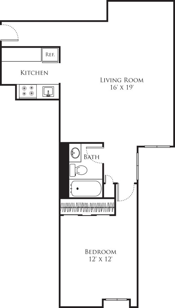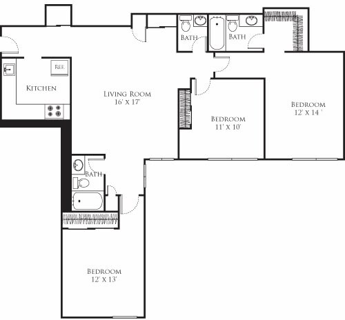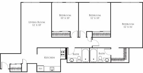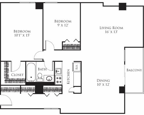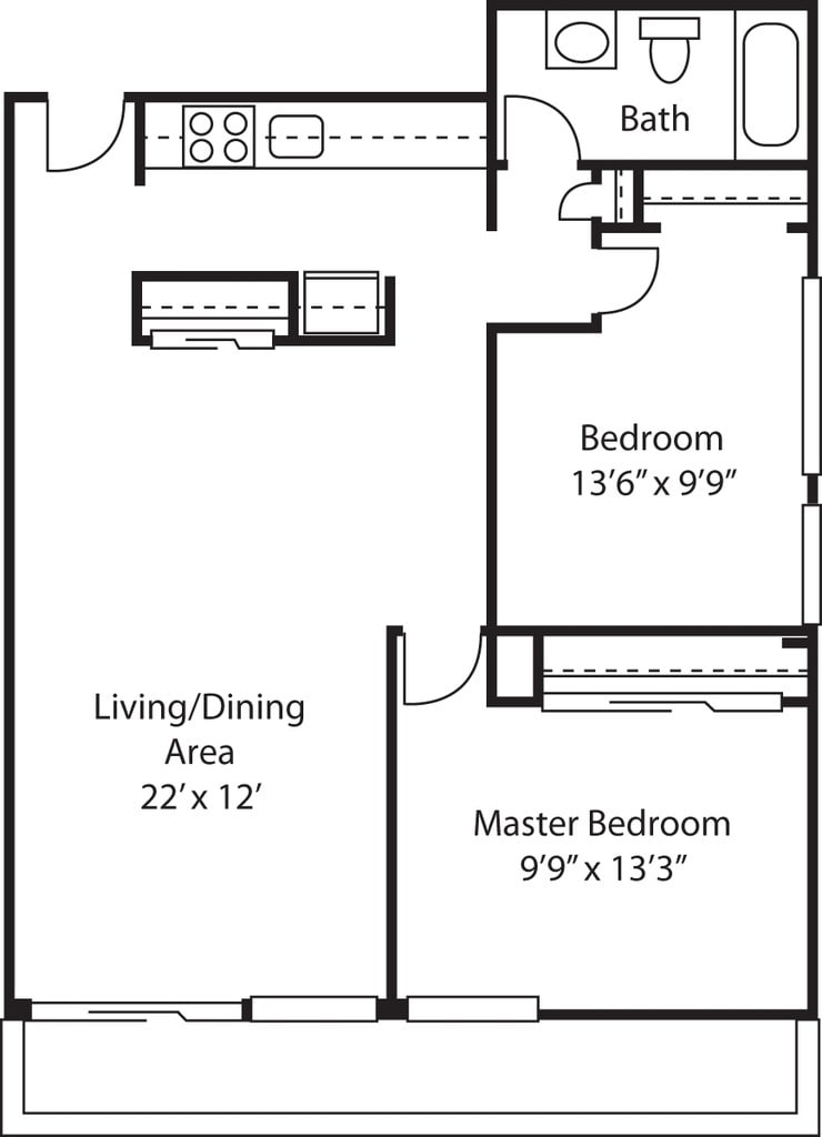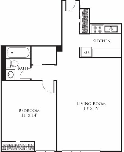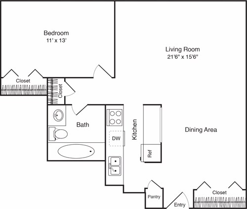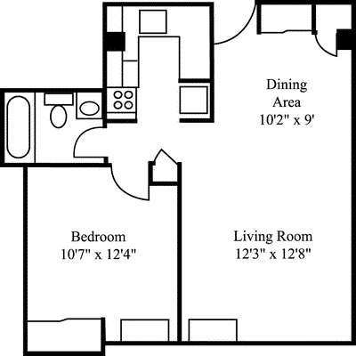 Modelo de apartamento: Plan 19Llame para Precios1 Dormitorio, 1 Baño, 439 sq ftNo Disponible![]()