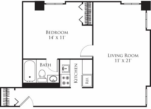 1 Dormitorio, 1 Baño, 506 pies²Precio Mensual TotalDisponible Nov 21Galería del Modelo