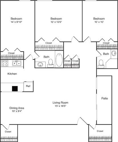 Modelo de apartamento: Plan 32Llame para Precios1 Dormitorio, 1 Baño, 439 sq ftNo Disponible![]()