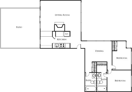 Modelo de apartamento: Plan 33 with PatioLlame para Precios1 Dormitorio, 1 Baño, 439 sq ftNo Disponible![]()