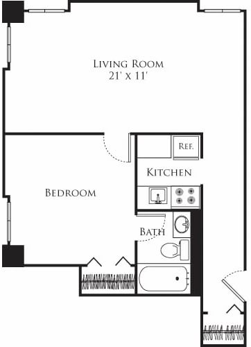 Modelo de apartamento: 1ALlame para Precios1 Dormitorio, 1 Baño, 577 sq ftNo Disponible![]()