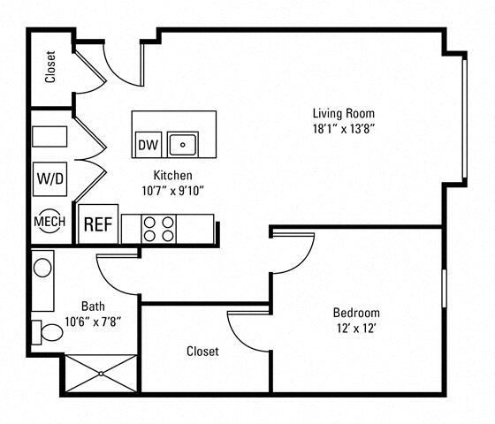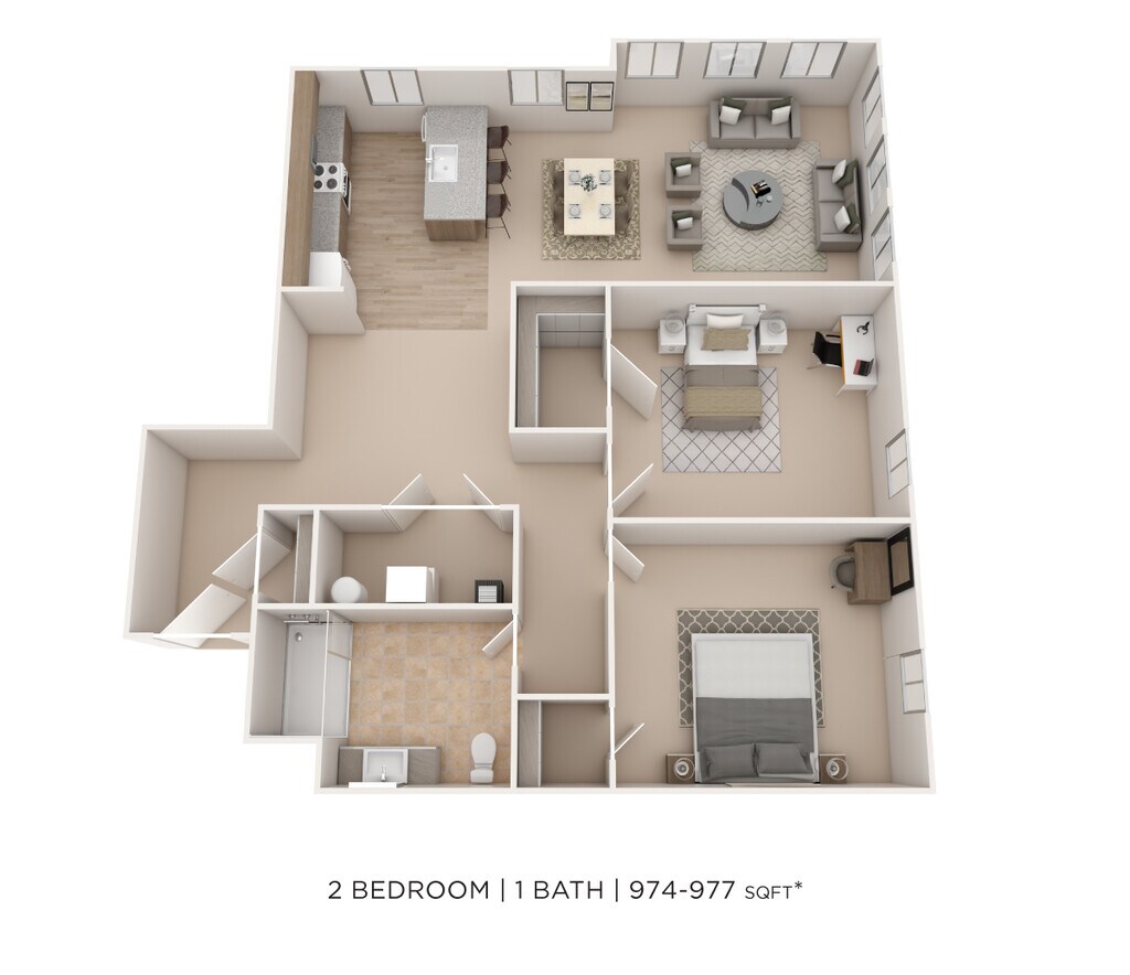 Modelo de apartamento: One Bedroom- 713 sqftLlame para Precios1 Dormitorio, 1 Baño, 716 sq ftNo Disponible![]()