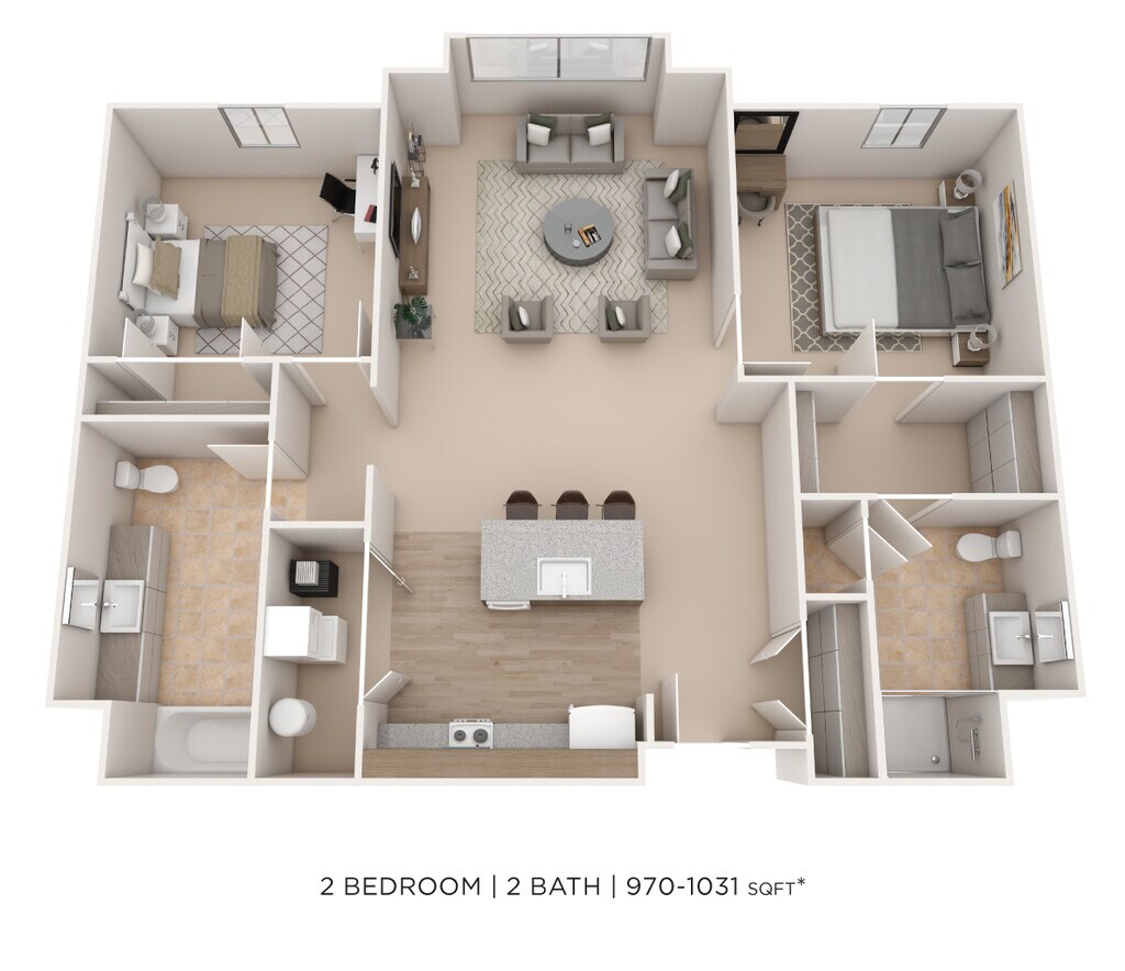 Modelo de apartamento: One Bedroom- 779 sqftDesde $2,2551 Dormitorio, 1 Baño, 779 sq ftDisponible November 23, 2025![]()