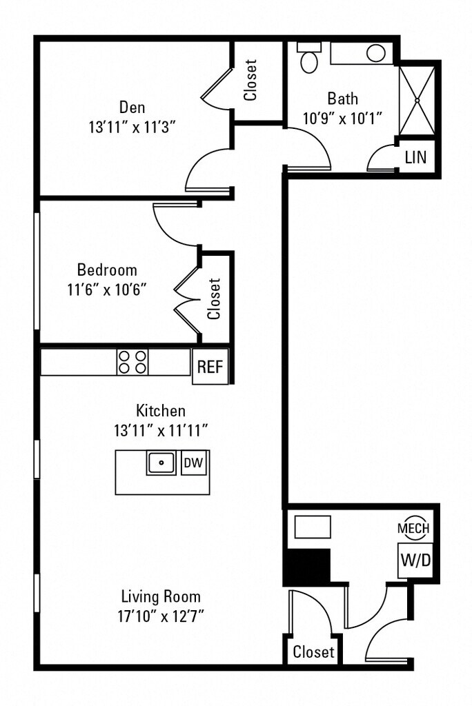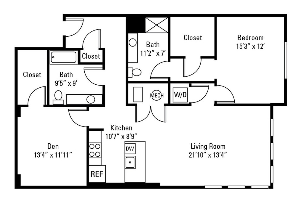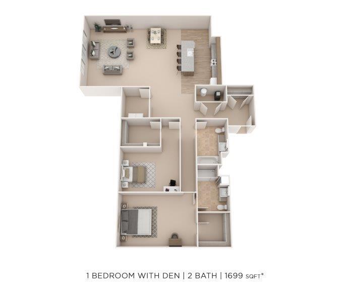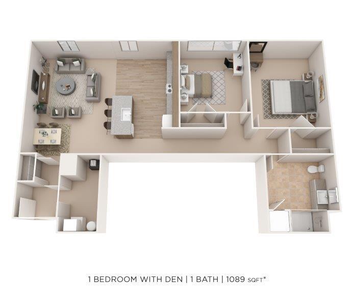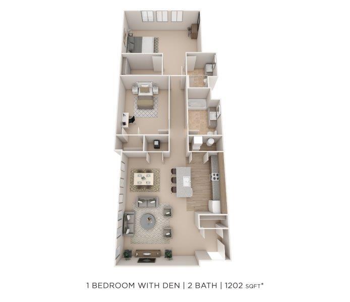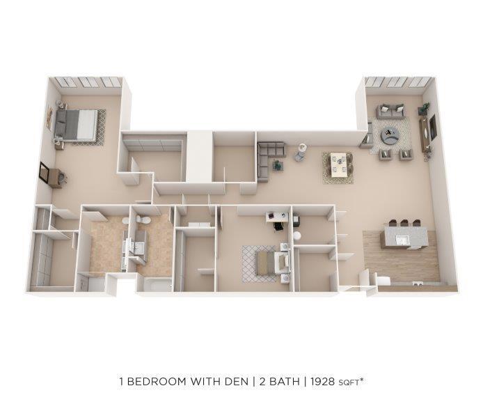 Modelo de apartamento: One Bedroom 2 Bath w/ Den- 988-991 sqftDesde $2,9701 Dormitorio, 2 Baños, 988-991 sq ftDisponible December 21, 2025![]()