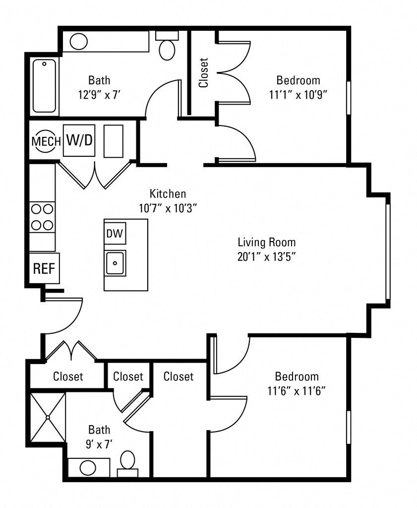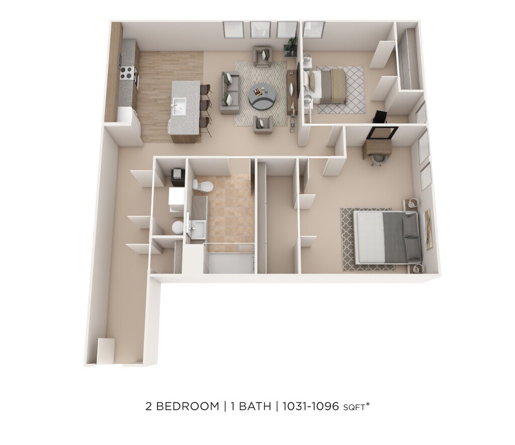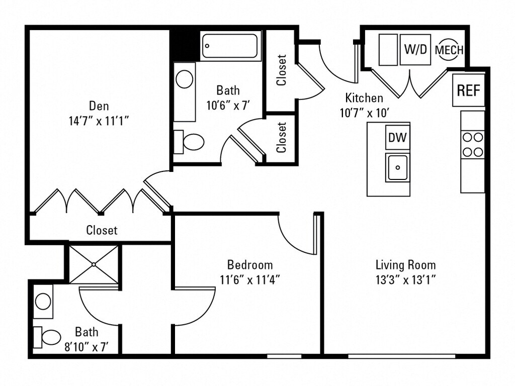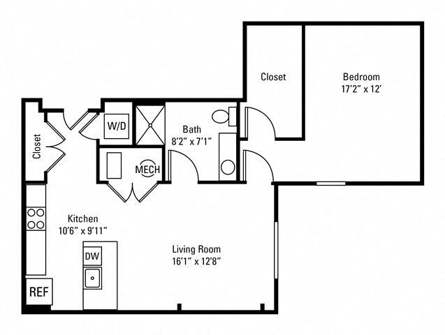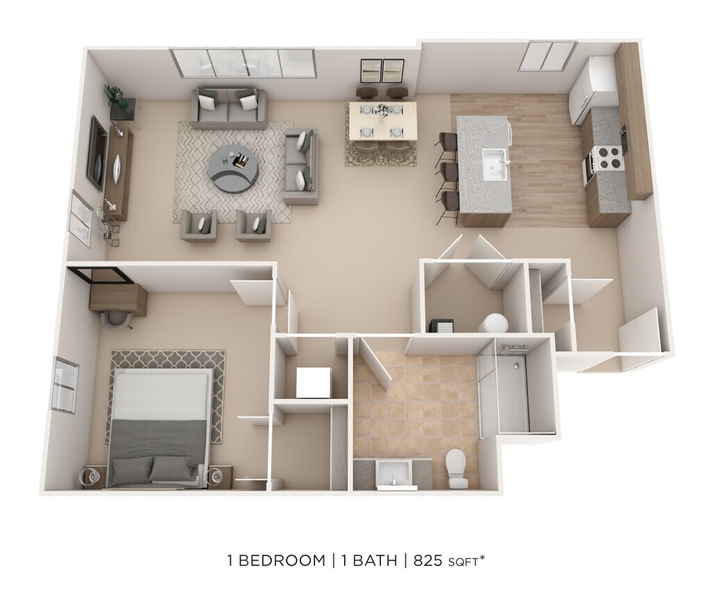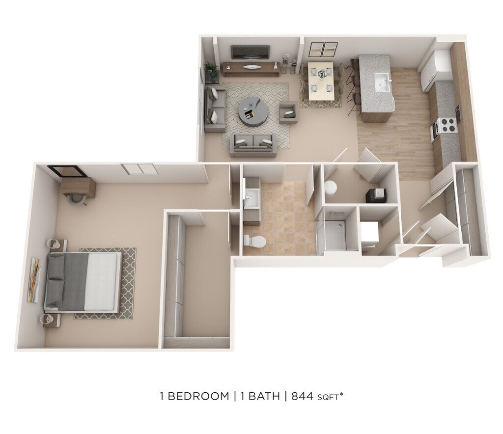 Modelo de apartamento: One Bedroom- 805 sqftLlame para Precios1 Dormitorio, 1 Baño, 805 sq ftNo Disponible![]()
