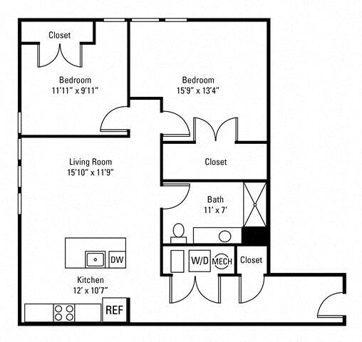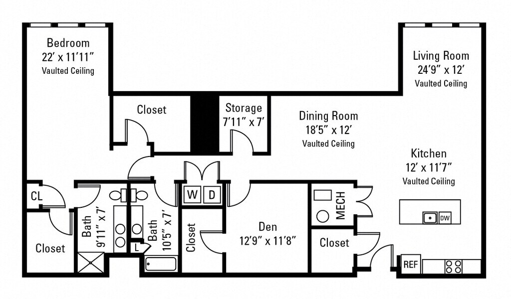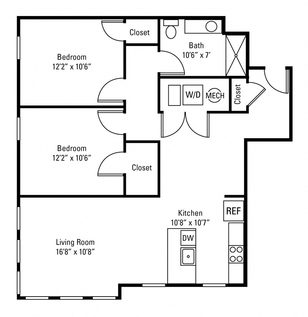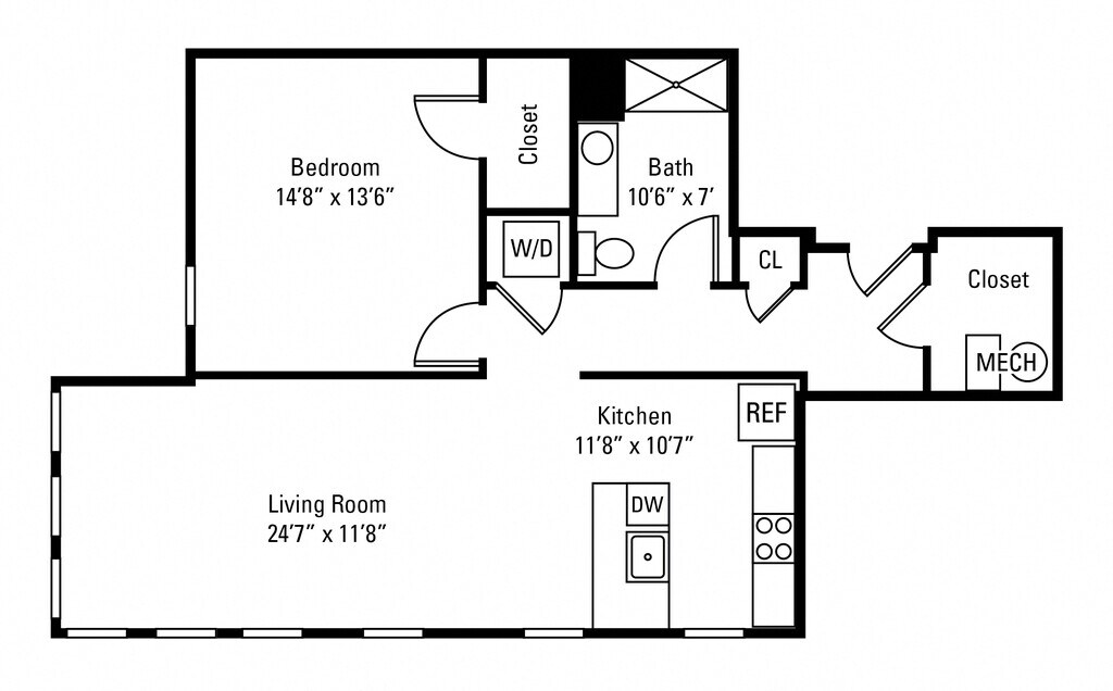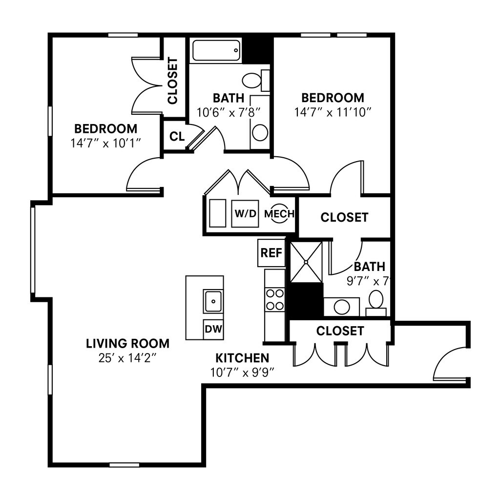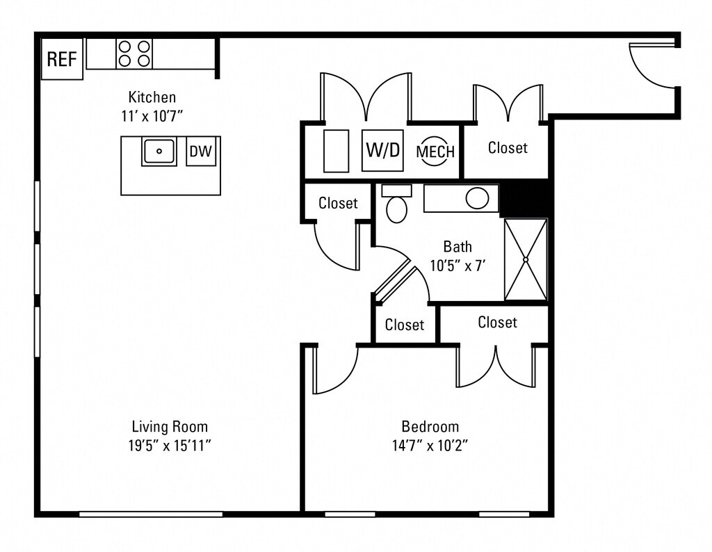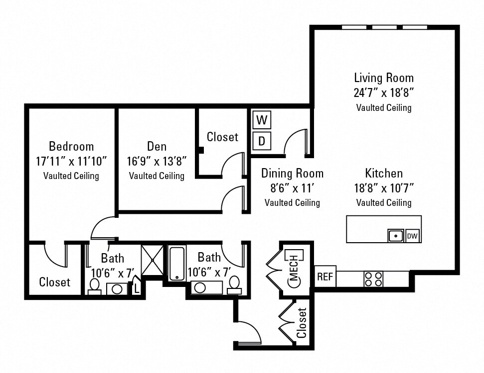 Modelo de apartamento: One Bedroom- 805 sqftLlame para Precios1 Dormitorio, 1 Baño, 805 sq ftNo Disponible![]()