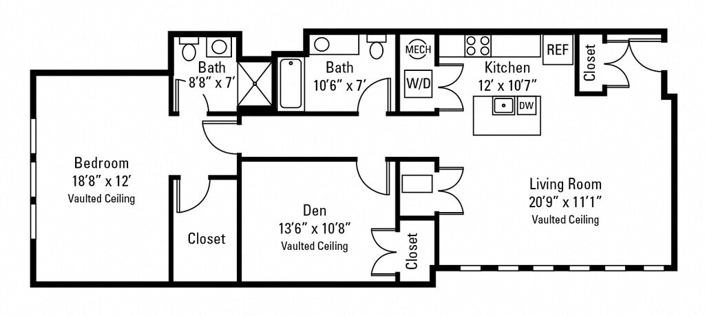 1 Dormitorio, 1 Baño, 805 pies²Galería del Modelo