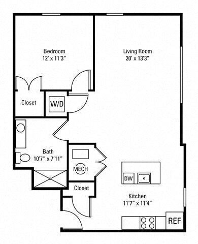 One Bedroom- 661-737 sqft - Plano 1 ![]()