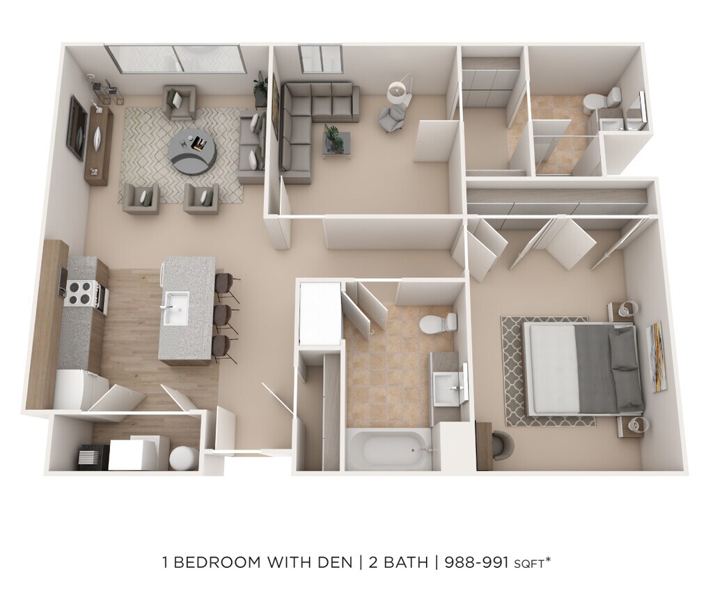 One Bedroom 2 Bath w/ Den- 988-991 sqft - Plano 1 ![]()