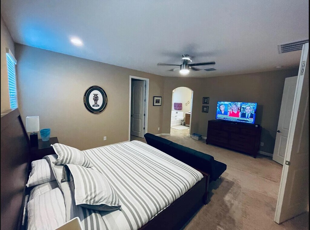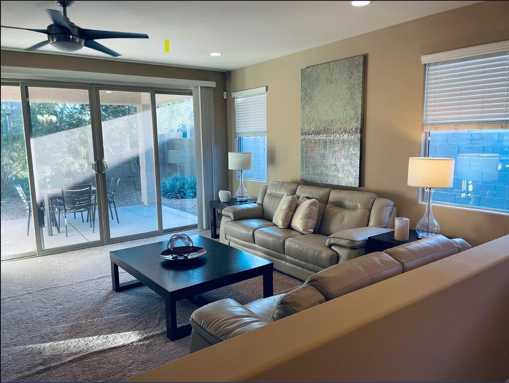 Completamente amueblado, 3 dormitorios, 2 baños. Muy limpio y superbrillante, pacto con las tiendas, a poca distancia a pie del centro de entretenimiento Westgate y el Estadio Statefarm. Incluido en el alquiler de dos cajas de Cox TV con canales familiares. Negocio de Internet de alta velocidad WiFi 500 MB/s Rent: $4,400 por hasta 30 días, $4,300 por hasta 90 días, $3,900 por más de 90 días