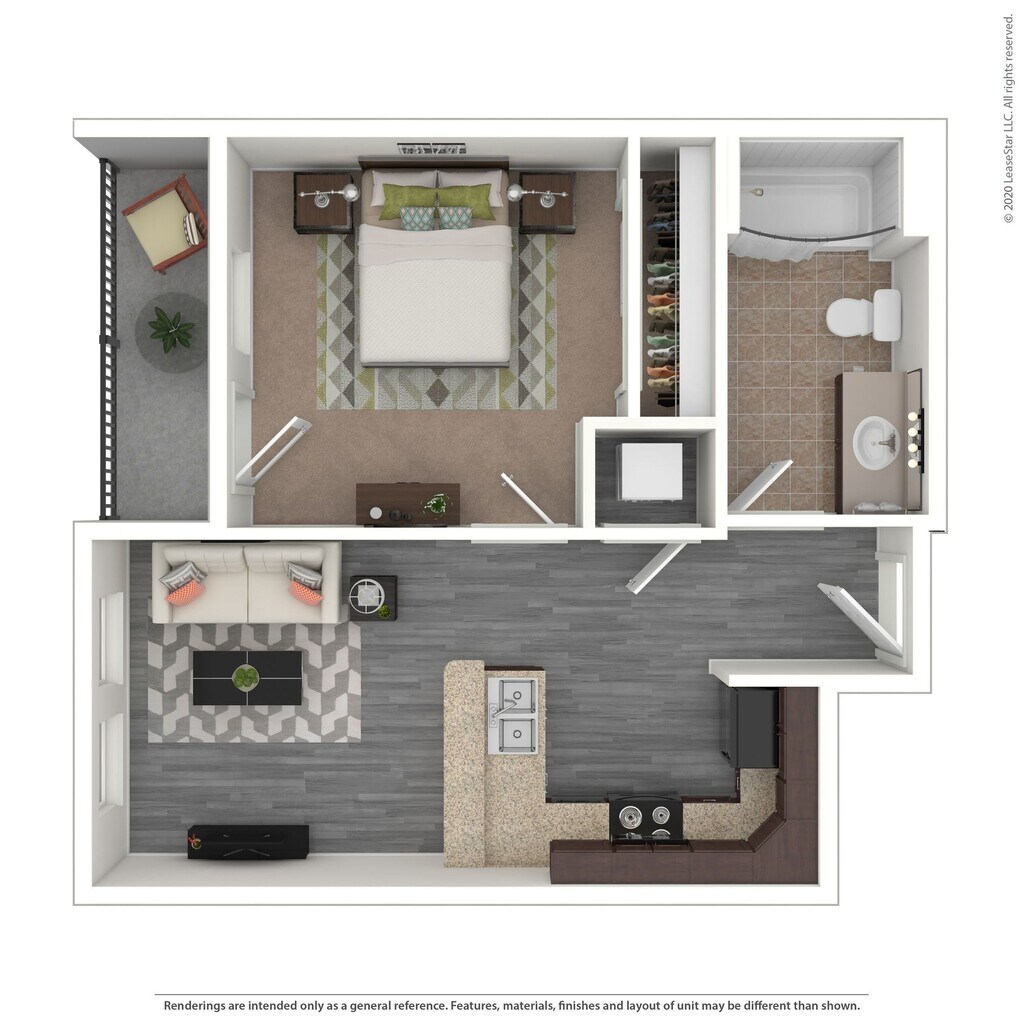 1 Dormitorio, 1 Baño, 592 pies²Disponible May 12, 2026Galería del Modelo