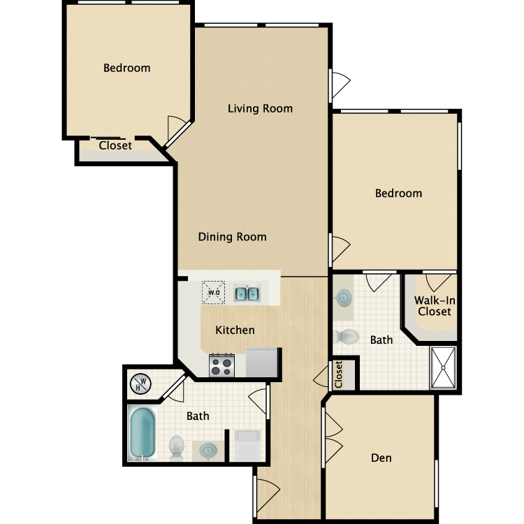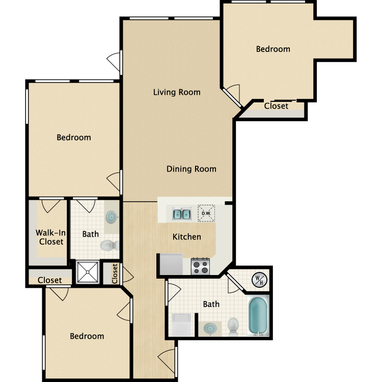 Modelo de apartamento: Plan DLlame para Precios3 Dormitorios, 2 Baños, 1117 sq ftNo Disponible![]()