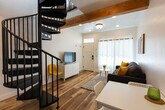 Nueva construcción: hermosos, casa adosada de 1 habitación/baño modernos. Ubicado en el histórico distrito de Ephraim, 1 cuadra de Snow College & Main St, a una distancia a pie de restaurantes, tiendas, teatro, campo de juego, de fotos y bibliotecas. Cocina completa con gabinetes de abedul, encimeras de cuarzo, electrodomésticos de acero inoxidable: refrigerador, lavaplatos, horno de microondas, estufa/horno, triturador de basura. Lavadora/secadora en el apartamento, aire acondicionado. Diseñado a medida, amplios planos de planta de concepto abierto de: pisos de tablones de madera, escalera de caracol, gabinetes de abedul empotrados, techos de 9 pies en el piso principal, techos estilo catedral en planta superior, vigas de madera, amplio baño con azulejos de metro y hexagonal, ventanas grandes. Hermosas vistas de la variedad de Wasatch central, una gran cantidad de hermosas del sur de luz. Dedicados estacionamiento fuera de la calle. Sin duda, no se admiten mascotas/smoking/vaping. Verificación de antecedentes, de crédito y se requiere verificación de empleo (cargo de solicitud), servicios públicos incluidos.