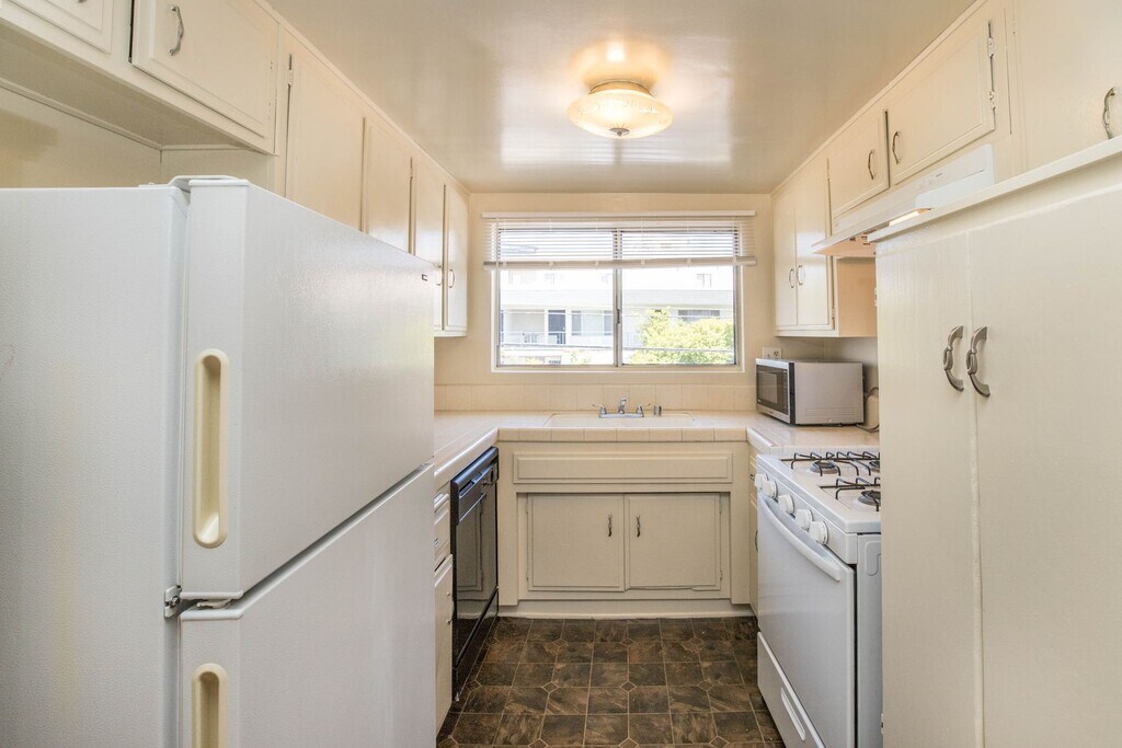 Unit #6 Charming upper 1+1 unit located in the highly sought-after Brentwood neighborhood. This freshly updated unit features laminate flooring throughout. Enjoy a spacious living room and dining area with built-in cabinetry, perfect for entertaining. The unit is equipped with window air conditioning for added comfort, and the kitchen includes a gas range and refrigerator. The generously sized bedroom boasts wall-to-wall closets for ample storage. Additional hallway cabinets provide even more space for your belongings. This unit includes assigned parking space (tandem) and access to on-site laundry facilities. Tenant pays all utilities except water and trash, no pets allowed.