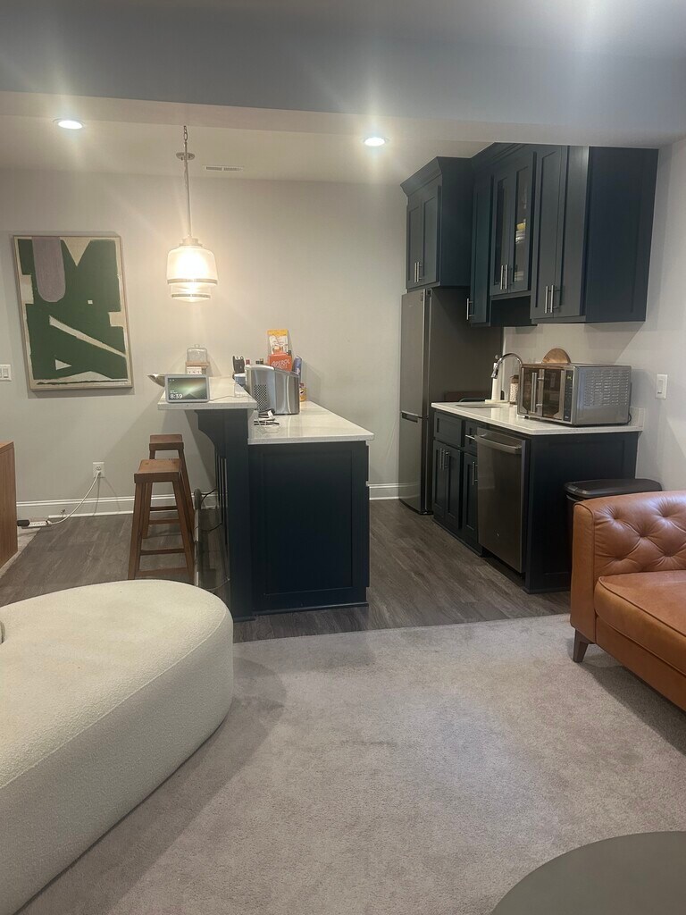 Tengo una amplia (aprox. 1.100 pies cuadrados) de apartamentos privado en el sótano sin amueblar con entrada privada para alquiler. El espacio incluye una amplia habitación con vestidor, baño privado, sala para la familia, dedicado y una cocina pequeña de lavandería disponibles para alquiler en mi hogar familiar de lujo cerca del metro de Vienna. La casa se completó en febrero de 2021, y está a solo un poco más de un año de edad. Es un paseo out/English el sótano y hay una gran cantidad de ventanas y luz natural. Hay un espacio de estacionamiento en la calle disponible. El espacio también puedes ser parcialmente amueblados. Todos los servicios públicos están incluidos, además de Internet de alta velocidad incluidos. El espacio es apropiada para 1 persona. La casa es de aproximadamente 3/4 de milla a pie de la estación de metro de Vienna y espaldas a Nottoway parque. The apartamentos.com solicitud es necesario y que incluye un fondo y se requiere verificación de crédito.