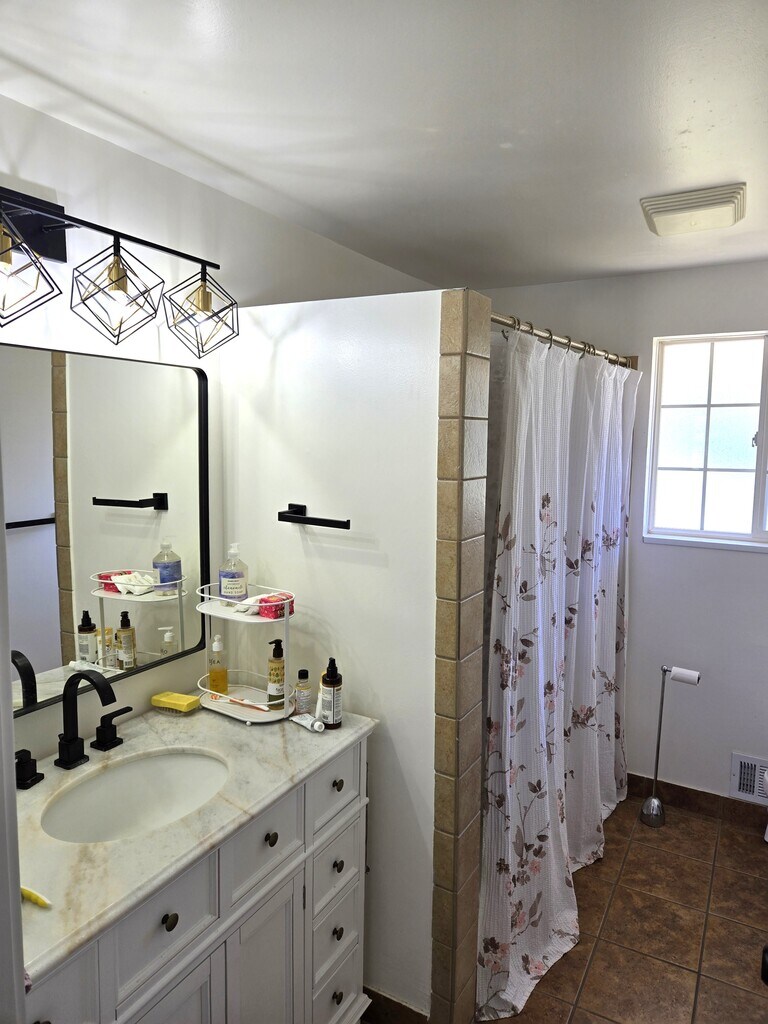 The first floor of this lovely home is for rent. Open concept living room and kitchen area. 3 bedrooms and 1 good size bathroom. Refrigerator, microwave, washer and dryer included. Excellent neighborhood, close to schools and parks. Parking includes 2 off-street places (one parking place is covered). Central air. Large, fenced yard. Basement not included - One quiet occupant lives in the basement. Basement has separate entrance. Do not disturb occupant. Cost of utilities is $200 flat fee per month. Utilities included are gas, electric, water, sewer, and trash. Tenant pays internet or cable. Total cost to tenant is $2300. per month. No Pets.