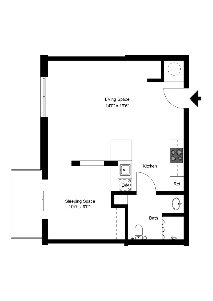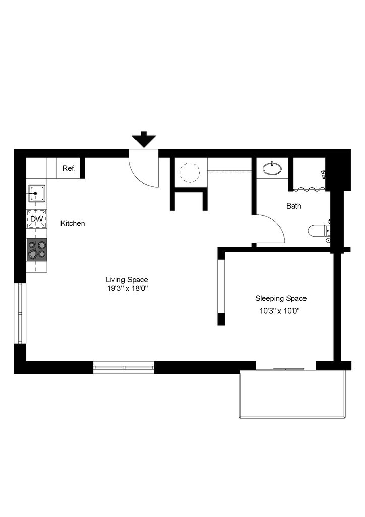 Baserunner - Plano 3 Unidad de apartamento: 313Modelo de apartamento: Baserunner$9501 Dormitorio, 1 Baño, 546 sq ftDisponible AhoraHomerun