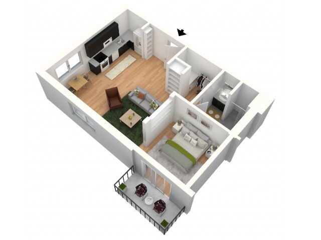Modelo de apartamento: FlyballDesde $8951 Dormitorio, 1 Baño, 539-562 sq ftDisponible Ahora![]()