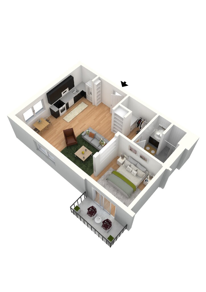 1 Dormitorio, 1 Baño, 533-546 pies²Disponible AhoraGalería del Modelo