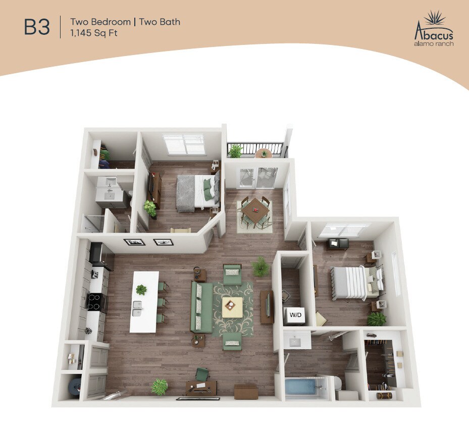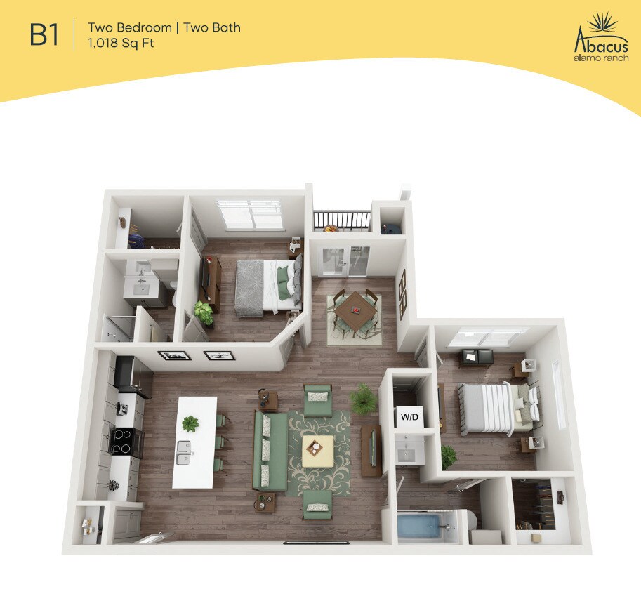 Estamos abiertos y nuestro equipo está aquí para ti. En primer lugar, elige el tipo de recorrido que prefieras: EN PERSONA, VIDEO, EN VIVO O POR TELÉFONO. ¡Luego, ponte en contacto con nosotros para programar una hora! *** Junto a un área verde de 8 acres y un sendero natural, Abacus Alamo Ranch ofrece un inigualable número de comodidades, diseño moderno, acabados excelentes, características ecológicas y una excelente ubicación en el área de Alamo Ranch en West San Antonio. Ubicado a la salida de la autopista estatal 151 y el Loop 1604, Abacus Alamo Ranch hace que viajar diariamente sea muy fácil. Además de nuestros apartamentos que admiten mascotas, tenemos la ubicación perfecta para que tú y tu amigo peludo estén conectados a la madre naturaleza; Culebra Creek Park está ubicado a una poca distancia a pie de nuestro edificio de apartamentos. Contamos con apartamentos de lujo de una y dos habitaciones con techos de 9 pies, paquetes de iluminación de diseñador, vestidores, balcones y patios privados con patios cercados en apartamentos seleccionados. Descubre más sobre la vida de apartamento de lujo en San Antonio en Abacus Alamo Ranch. ¡NUESTRA OFICINA DE ALQUILER ESTÁ ABIERTA! Ponte en contacto con nosotros hoy mismo para programar un recorrido virtual.