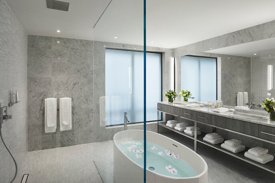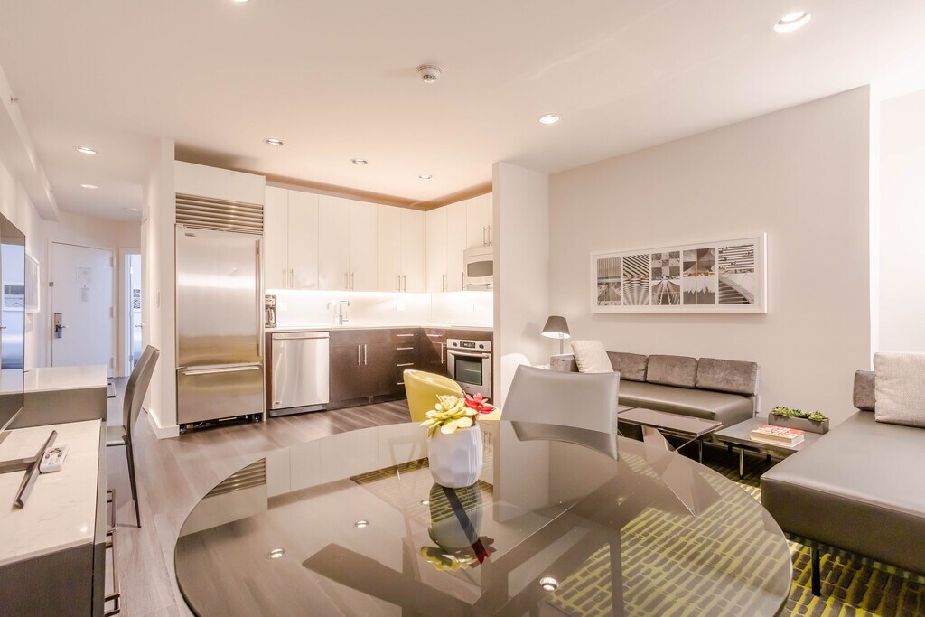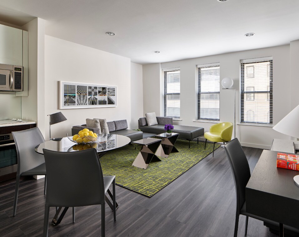 Ubicado en un tramo tranquilo de 44th Street, a pasos del tranquilo Bryant Park, AKA Times Square ofrece lujosos apartamentos completamente amueblados con alquileres flexibles de 6, 9 o 12 meses. AKA Times Square ofrece un respiro tranquilo en el corazón de una de las zonas más vibrantes de la ciudad de Nueva York con amplios apartamentos de una y dos habitaciones con cocinas elegantes y modernas, electrodomésticos de alta gama y una gama de sofisticadas comodidades residenciales. Los residentes tienen acceso privado en el lugar a un gimnasio Technogym, un salón con áreas de descanso relajadas y un centro de negocios. Después de una magnífica renovación por parte de un equipo de arquitectos de primer nivel, el sorprendente ático de dos niveles, concebido por el arquitecto y diseñador italiano de renombre internacional Piero Lissoni, cuenta con una espectacular terraza en la azotea con impresionantes vistas de la ciudad. Mira los planos de planta, verifica la disponibilidad y solicita la residencia de 1-2 habitaciones que te interese. Wi-Fi, televisión por cable y servicios públicos incluidos.