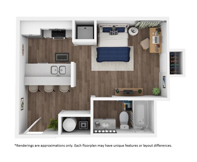 Estudio, 1 Baño, 430 pies²Disponible AhoraGalería del Modelo