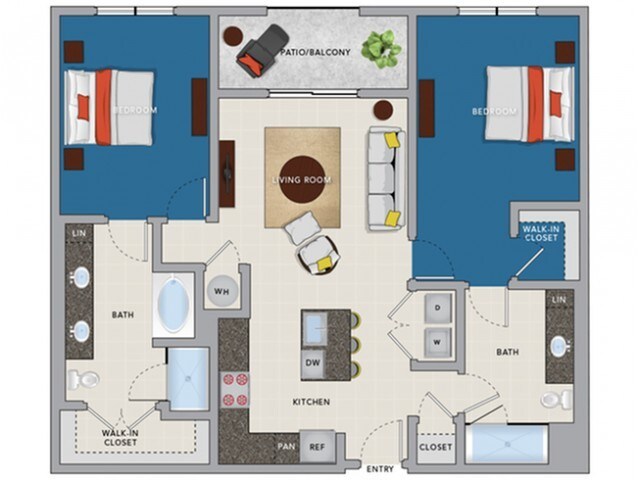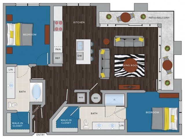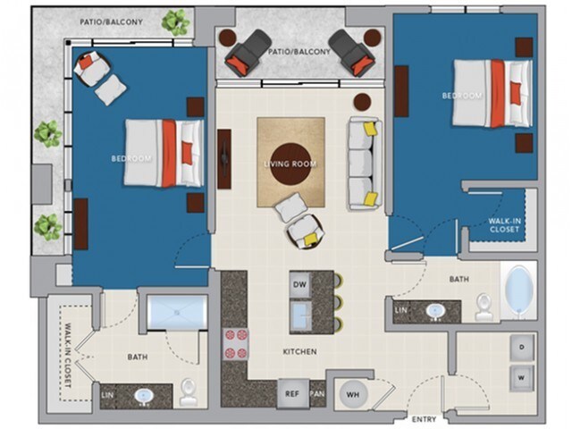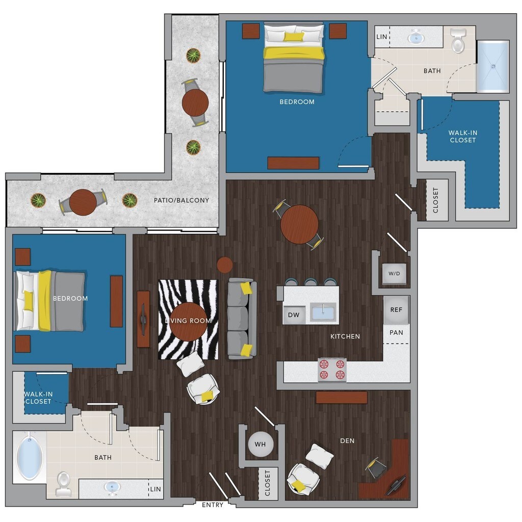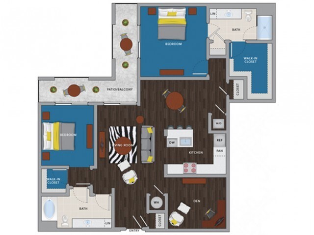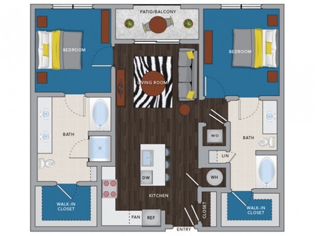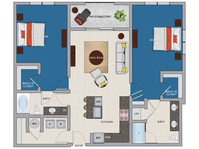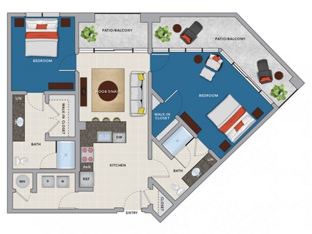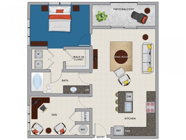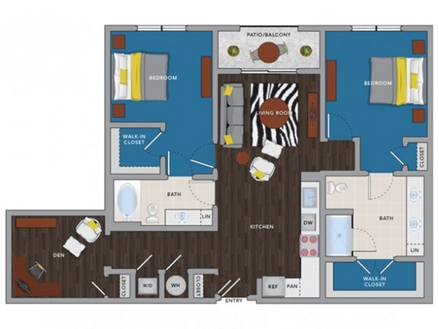 Modelo de apartamento: A3aDesde $2,2561 Dormitorio, 1 Baño, 735 sq ftDisponible Ahora![]()