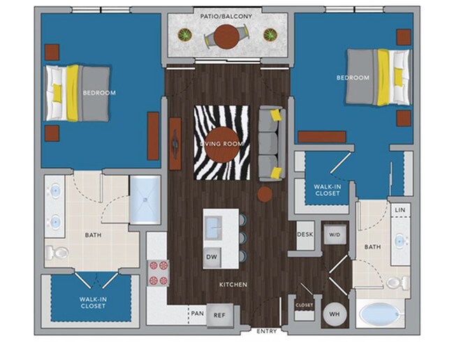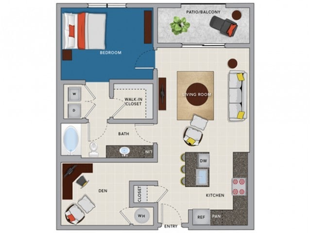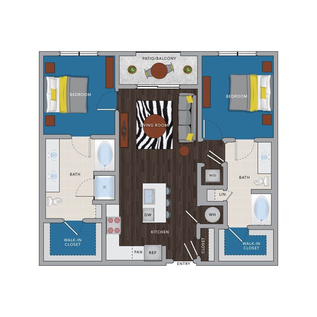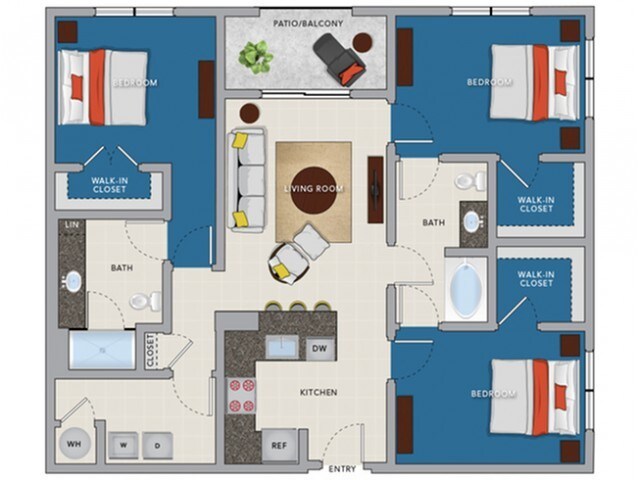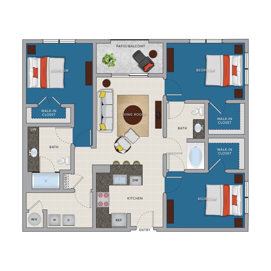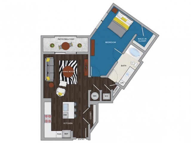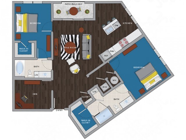 Modelo de apartamento: A3aDesde $2,2561 Dormitorio, 1 Baño, 735 sq ftDisponible Ahora![]()