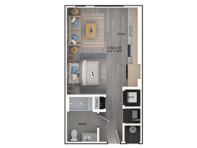 Estudio, 1 Baño, 586 pies²Disponible AhoraGalería del Modelo