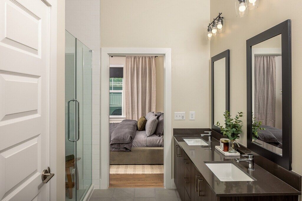 - Spa bathrooms with glass showers and/or soaking tubs with tile surrounds