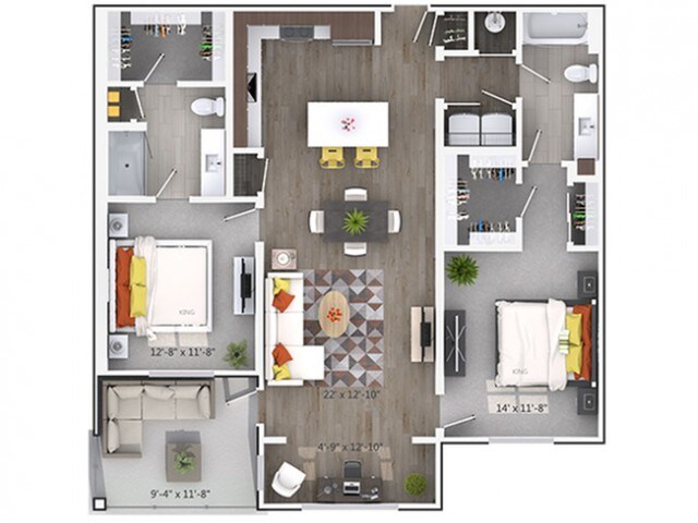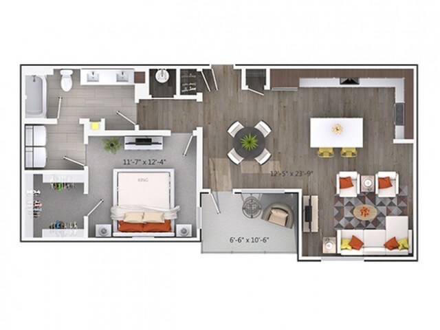 Modelo de apartamento: ChastainDesde $1,6921 Dormitorio, 1 Baño, 662 sq ftDisponible Ahora![]()