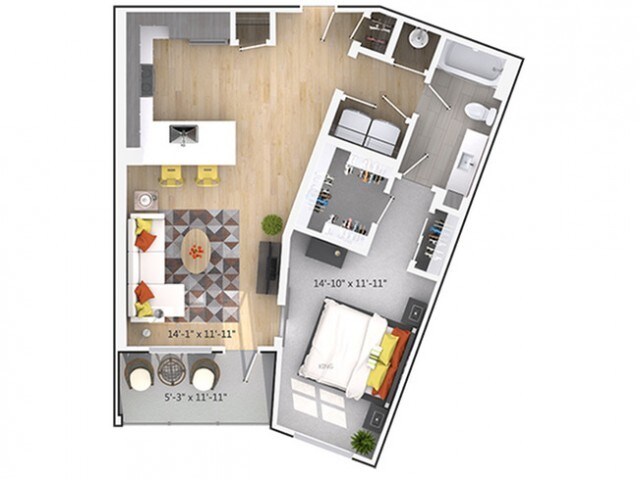1 Dormitorio, 1 Baño, 781 pies²Disponible AhoraGalería del Modelo
