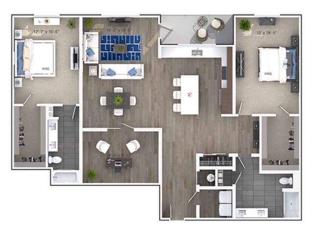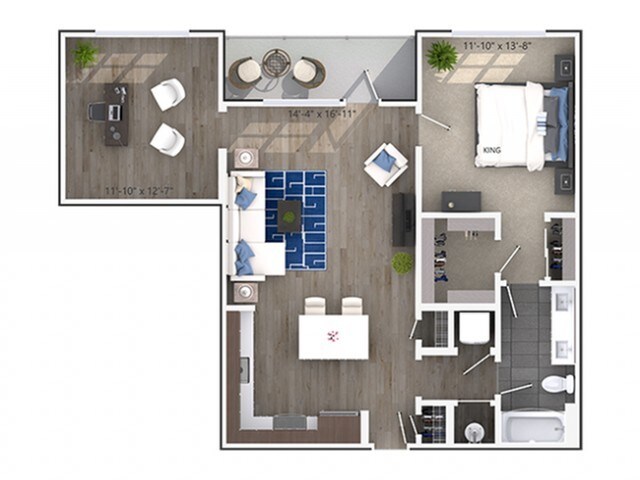 Modelo de apartamento: Claire (A2b)Desde $1,9151 Dormitorio, 1 Baño, 716 sq ftDisponible Ahora![]()