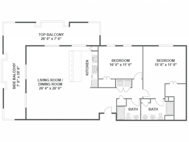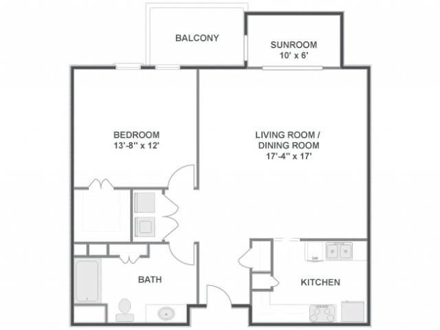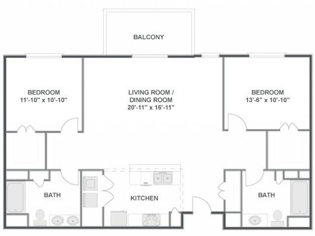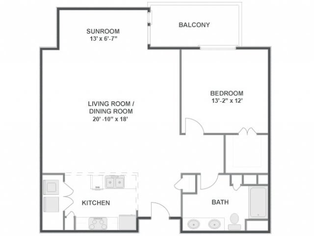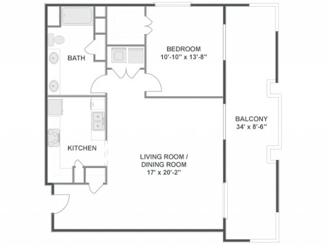 Modelo de apartamento: SabineDesde $2,4461 Dormitorio, 1 Baño, 691-705 sq ftDisponible Ahora![]()