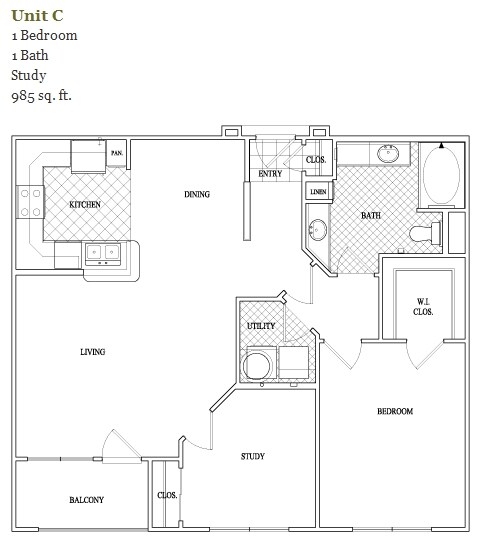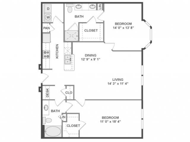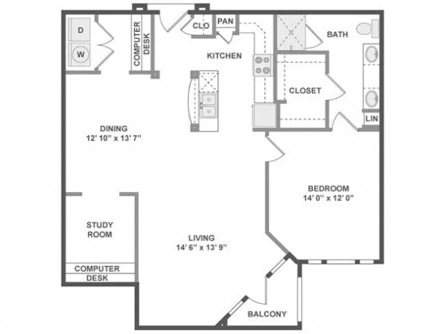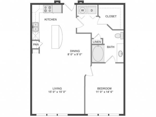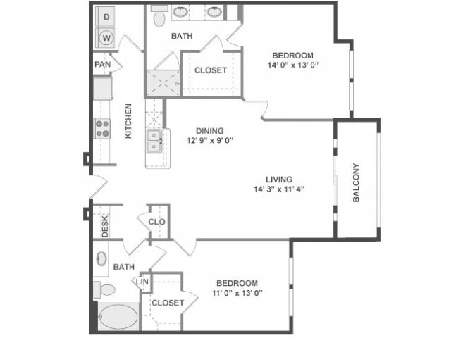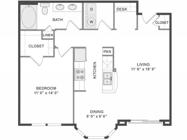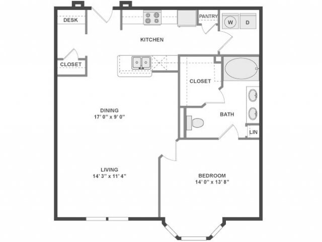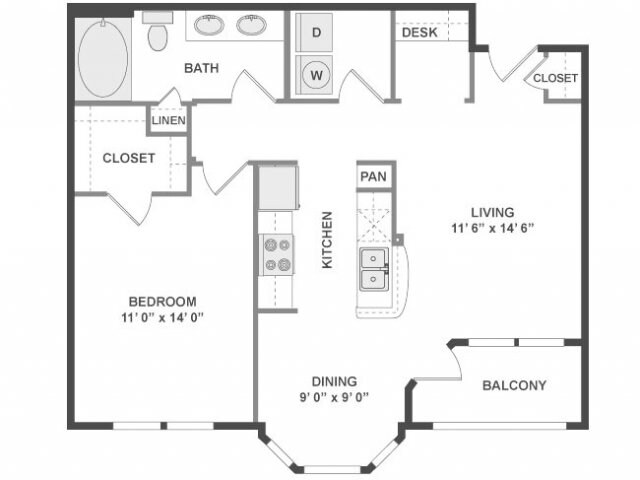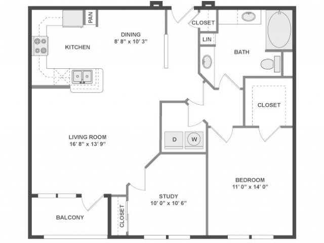 Modelo de apartamento: A3aDesde $2,0431 Dormitorio, 1 Baño, 780 sq ftDisponible Ahora![]()