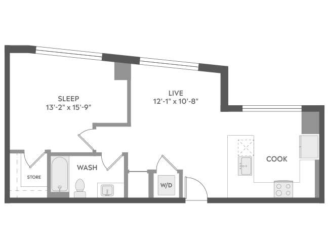 Estudio, 1 Baño, 516 pies²Disponible Jun 30Galería del Modelo