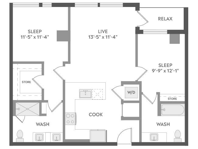 Modelo de apartamento: E2bEstudio, 1 Baño, 699 sq ftDisponible April 29, 2026![]()
