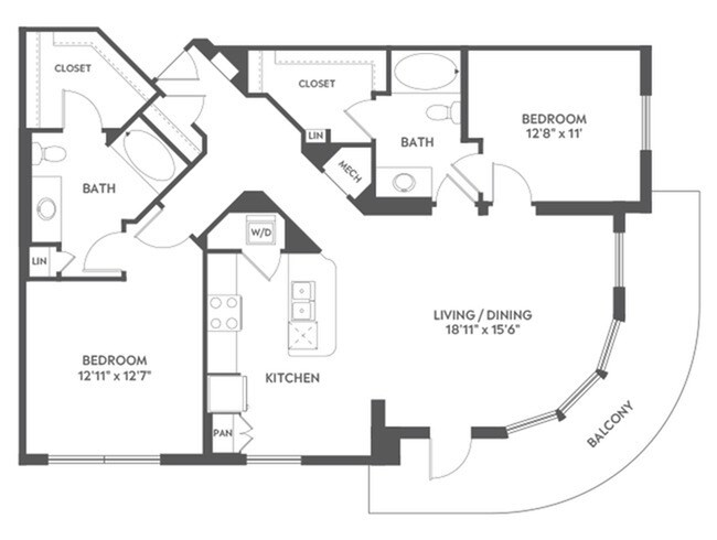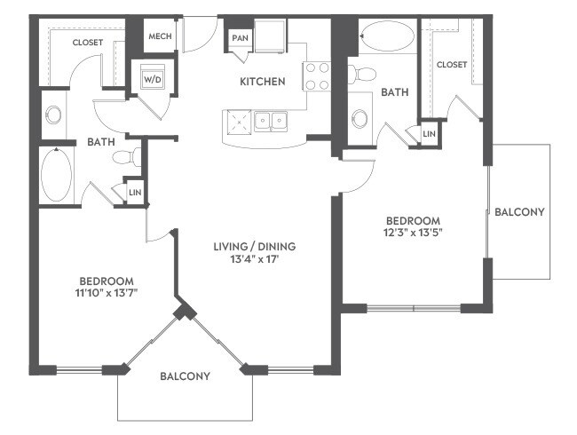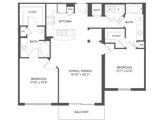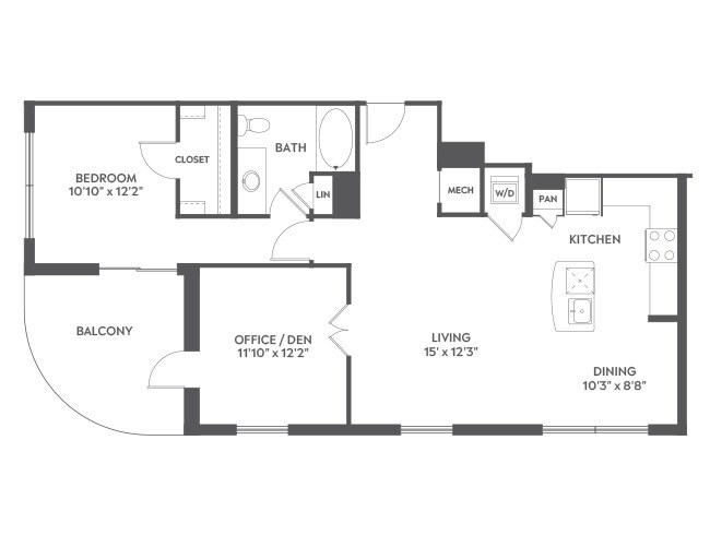 Modelo de apartamento: A4Desde $2,5901 Dormitorio, 1 Baño, 797-838 sq ftDisponible Ahora![]()