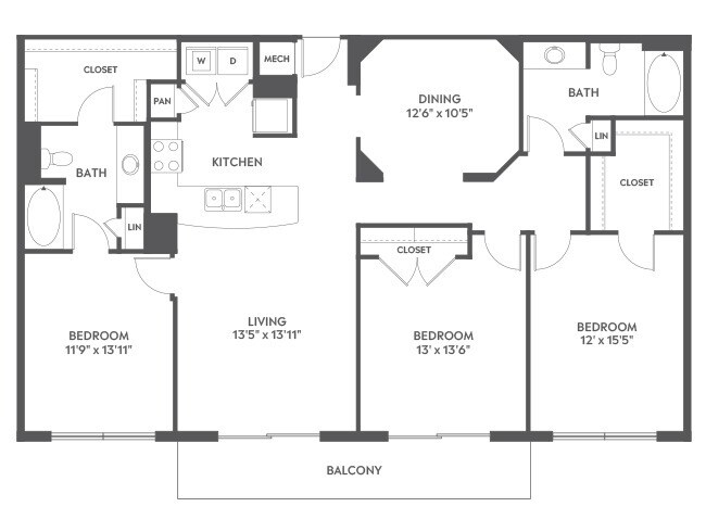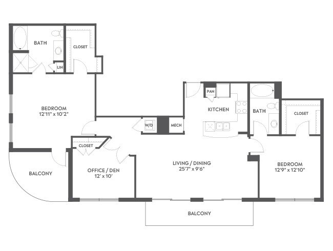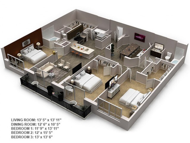Modelo de apartamento: A3Desde $2,5591 Dormitorio, 1 Baño, 723 sq ftDisponible Ahora![]()
