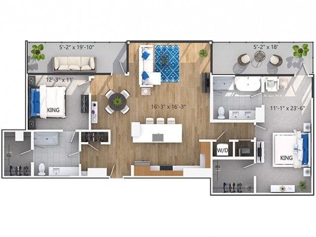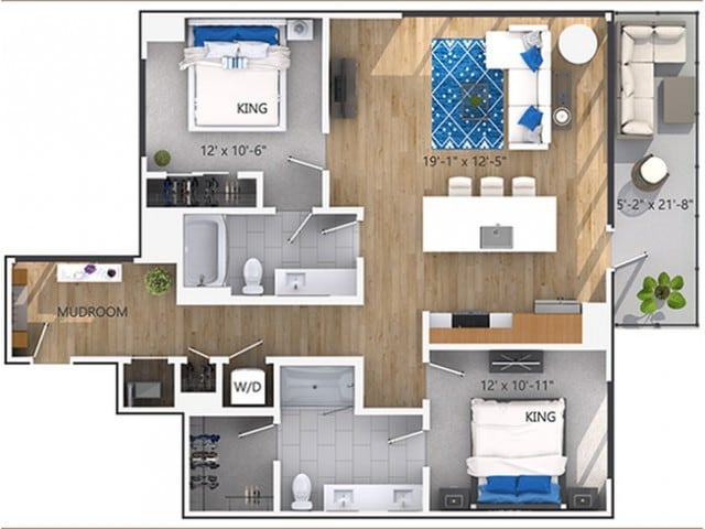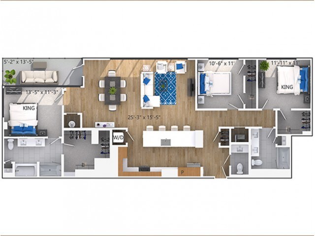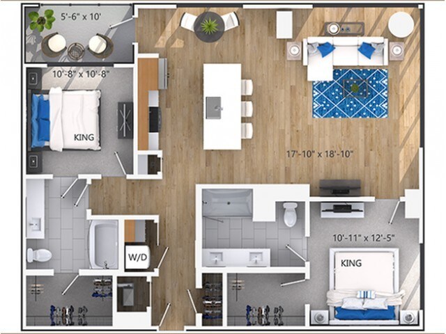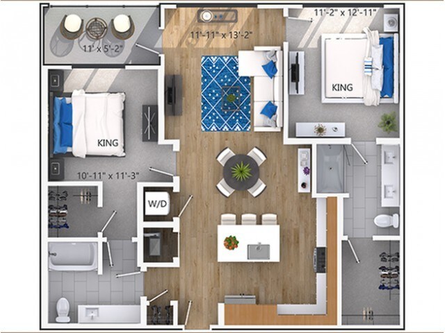Modelo de apartamento: A2Desde $1,7401 Dormitorio, 1 Baño, 625 sq ftDisponible Ahora![]()