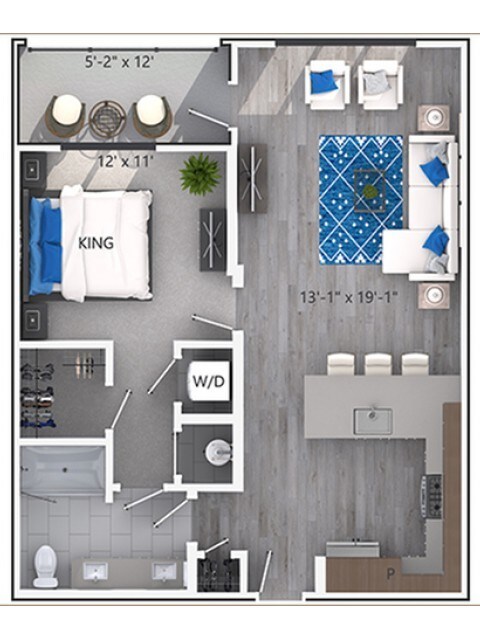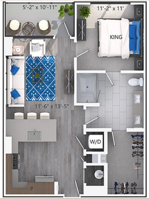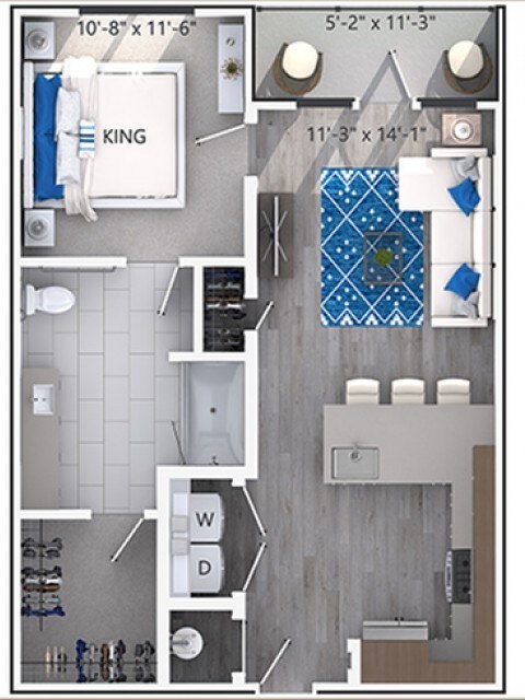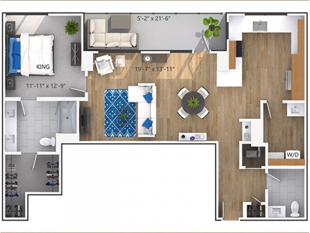 1 Dormitorio, 1 Baño, 711 pies²Disponible AhoraGalería del Modelo