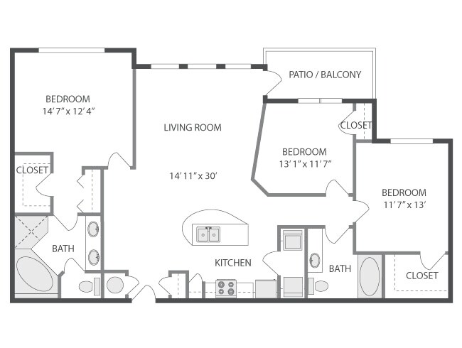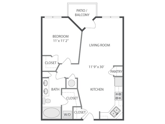 Modelo de apartamento: A3001 Dormitorio, 1 Baño, 702 sq ftDisponible Ahora![]()