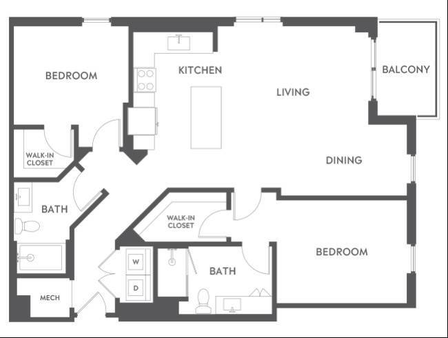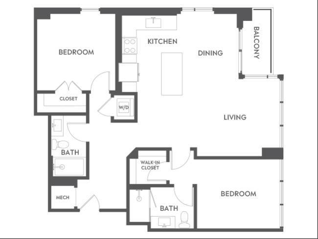1 Dormitorio, 1 Baño, 707 pies²Disponible AhoraGalería del Modelo