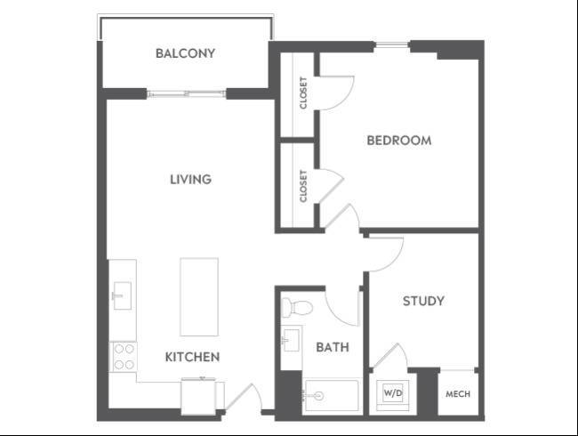 Estudio, 1 Baño, 571 pies²Disponible AhoraGalería del Modelo