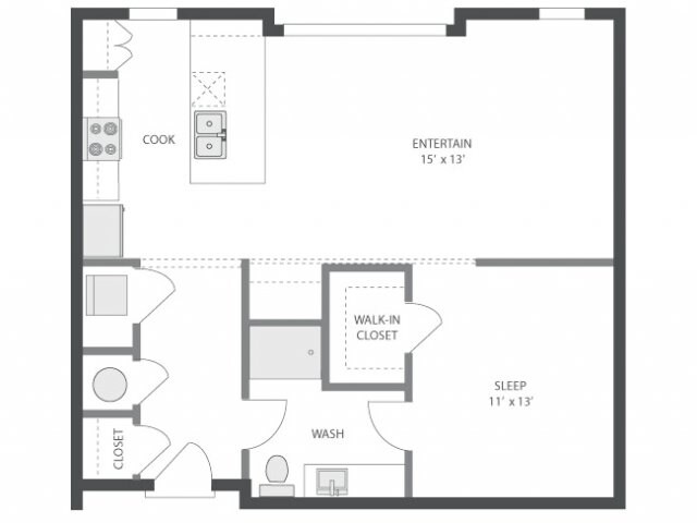 Modelo de apartamento: Inman1 Dormitorio, 1 Baño, 910 sq ftDisponible Ahora![]()